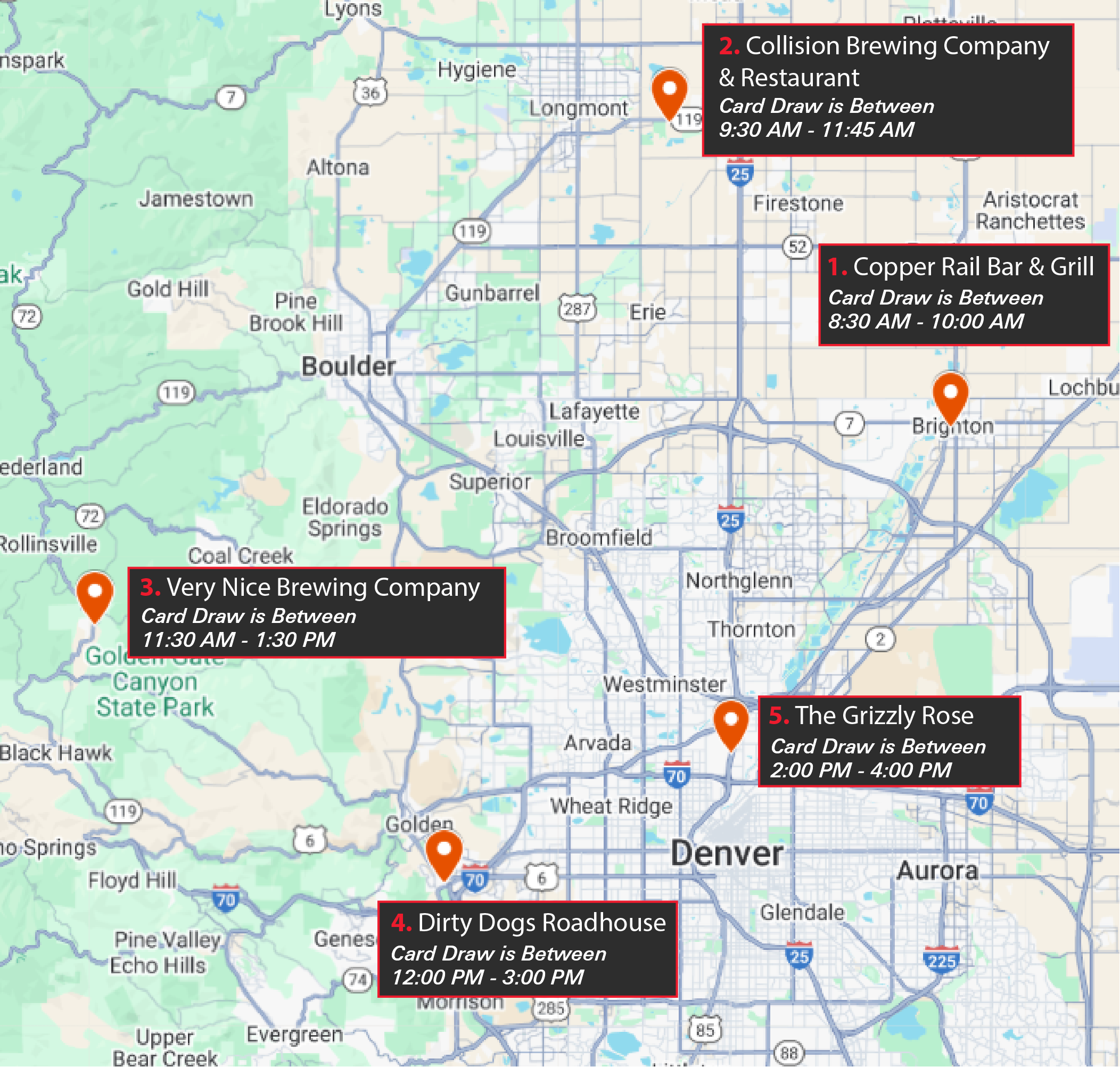 The Sturgeon Electric Poker Run includes five stops, starting in Brighton at Copper Rail Bar & Grill and ending in Denver at The Grizzly Rose where thousands of dollars in prizes will be awarded!